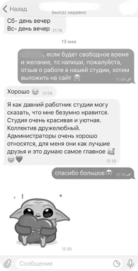 Есть чем поделиться о работе в нашей студии? Смело пиши!